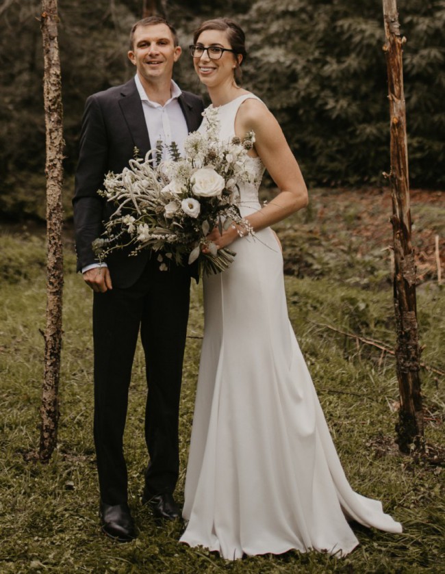 A clean, modern silhouette such as this crepe sheath lacks nothing, but the sheer floral lace back is a gorgeous touch. This dress is a beautiful, classic look that will never go out of style.