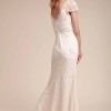 Absolutely everyone complimented my dress! This Gatsby style dress has a beaded vintage look and feel. I felt like a 1920s bride. The beaded cap sleeves add elegant sparkle to the dress. The slim fit is flattering and comfortable. I loved the ivory color. It feels heavy from the beads in a good way.