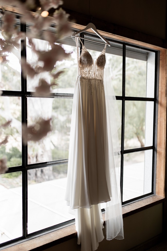 Bought from Adelaide bridal emporium. Lovely fitted top with flowy skirt. I had the dress taken in at the sides to fit me better and also shortened the train to a much more manageable bit still flowy silhouette.