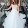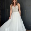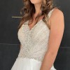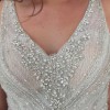 This gown is stunning and boasts gorgeous details on the bodice with a flowing skirt. Our model raved at how comfortable this gown is. Easy to move and dance. Has built in undergarments, no bra needed.