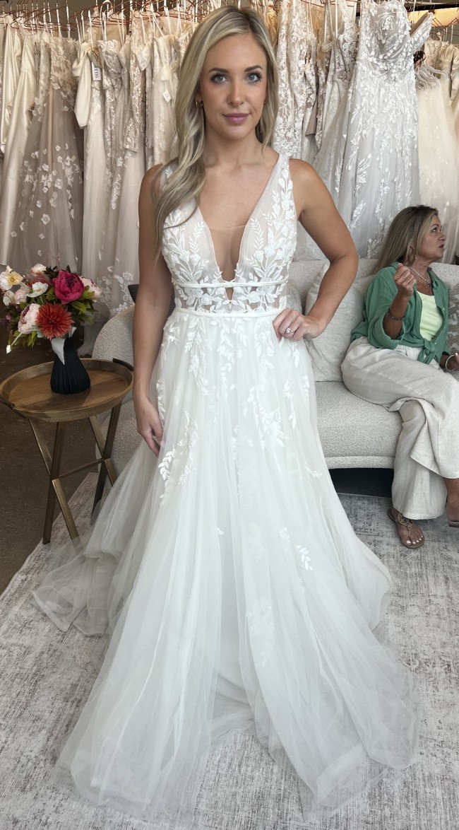 This dress is BRAND NEW. I picked it up 2 weeks ago from the bridal store. The only reason I’m selling is due to finding another dress I liked better on me. This dress is beautiful and even better in person. It has NOT been altered so this is a perfect opportunity to buy a NEW dress at a discount price!