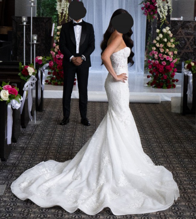 Fit perfectly. Stored in a smoke free, pet free home. Made me feel like a princess. I fell in love with this gown the moment I tried it on and even met the designer when I purchased it. She added some bead work to make it very unique and special. Veil is absolutely stunning too and was custom made to match the gown.