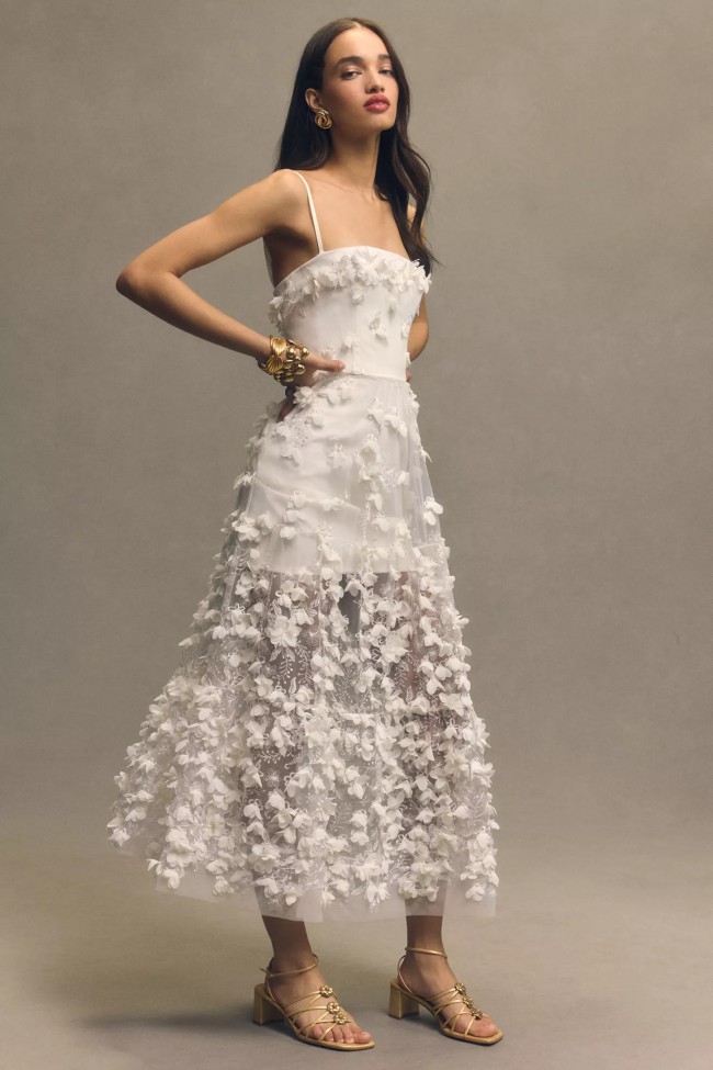 Helsi Audrey Square-Neck Floral Applique Sheer Midi Dress