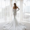 With a strapless sweetheart neckline, the bodice evokes a sparkling sheerness that is sure to flatter your shape, as the floral appliques trickle down the gown and into the romantic train. No matter which angle you look at Keira, she is sure to wow you.
