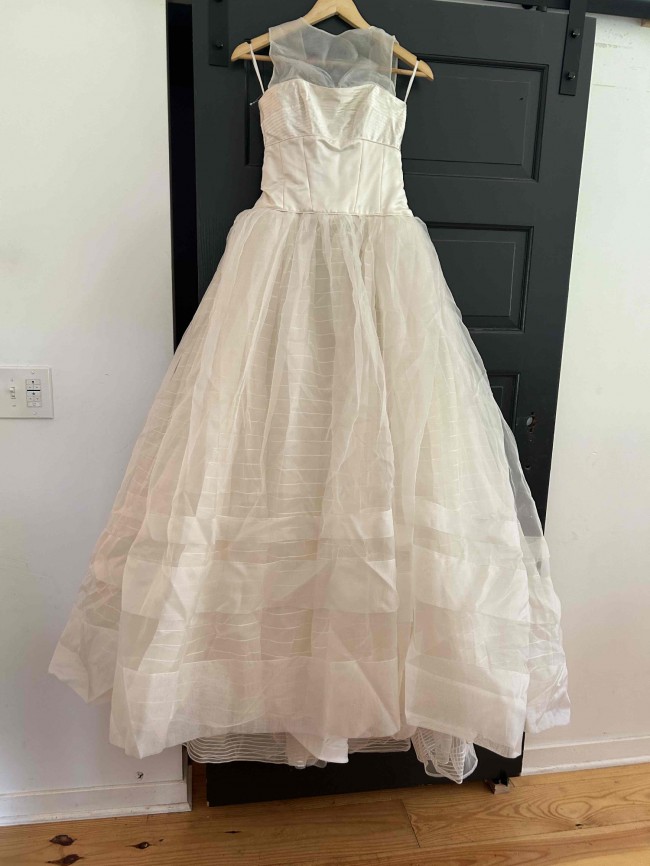 Beautiful ivory silk organza and satin. Made in Italy. High quality in every aspect. Hook and eye closure with buttons in back. Beautiful shelf condition. Price includes shipping in the Continental United States