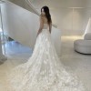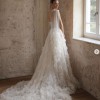 Bustle at back with 2 buttons to hook ups train for easy dancing.