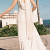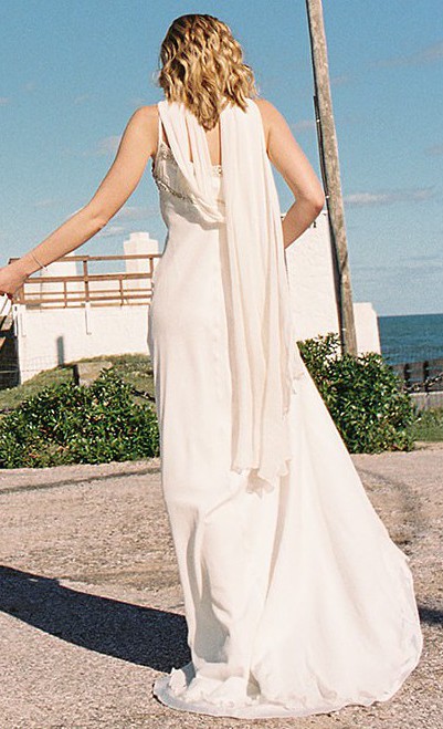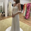 Purchased from Happy Isles NYC location in September 2023 for $2.3k. No alterations made. Gown is labeled a Medium (M) but would fit a modern size 0-2. Gorgeous beading and pleating around the top bust of the gown as well as beading/pleating on the top back of the gown. It an attached scarf at the back which can be worn for the look of a train or wrapped in whichever way you desire.