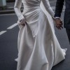 The whole dress is made out of a white mikado material that has been draped with multiple layers.