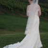 A mermaid silhouette wedding gown. Sweetheart neckline. Headpiece ($1150) included in purchase price.