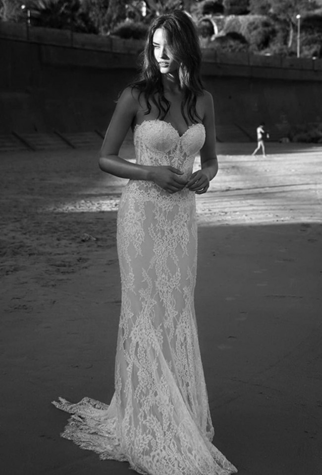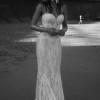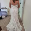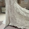 This dress is stunning. Is just too big for me. The raw edges on the train bring an organic vibe to the dress. Perfect for an outside wedding! Has not been altered.