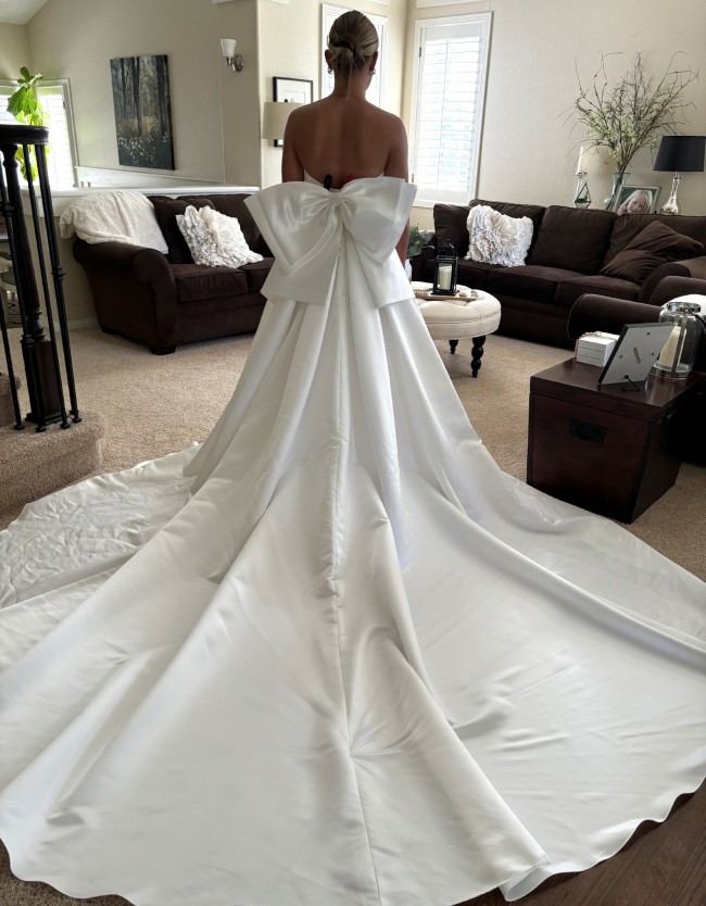 The dress features a charming detachable bow, which was purchased separately to allow for complete customization. You can choose to wear it or not, and position it in a variety of ways – the photos showcase three stunning options.
