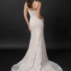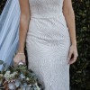 She is the perfect silhouette on all shapes and sizes. A classic square neck bodice with an illusion V side bodice cut out. The perfect dress for a bride who likes understated elegance and attention to detail with an embroidered and sequin sheet lace, a semi fit n flare skirt and 27 inch train. Detachable belt included.