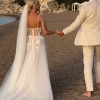 The Josephine gown from Muse By Berta effortlessly blends modern sophistication with an edgy, romantic charm. Showcased in a refined ivory, this gown is a statement piece for the contemporary bride seeking a touch of elegance with a bold twist. The strapless sweetheart neckline is complemented by a corset bodice, expertly tailored to enhance the figure and adorned with Berta’s signature bow for a distinctive finish.
