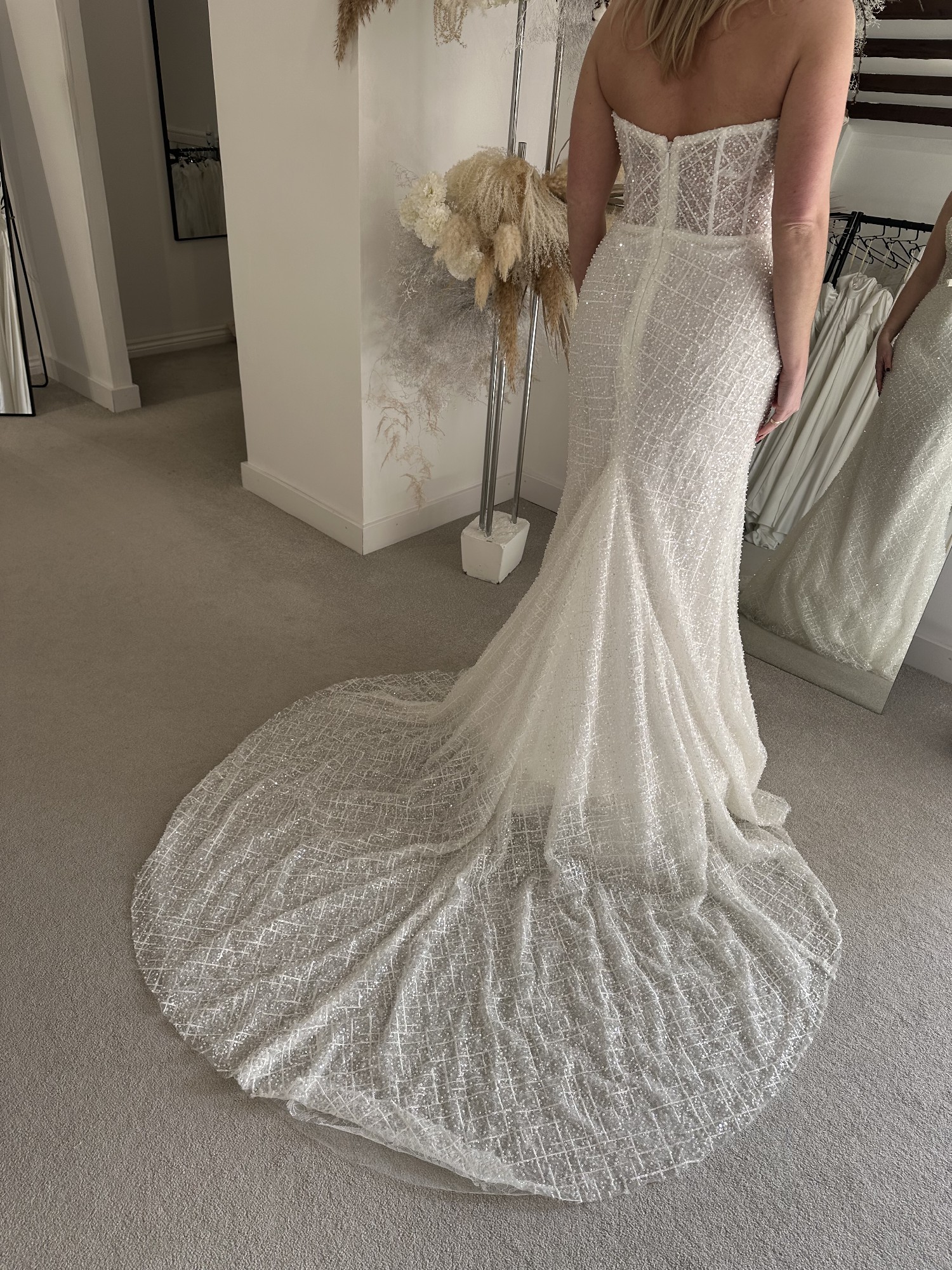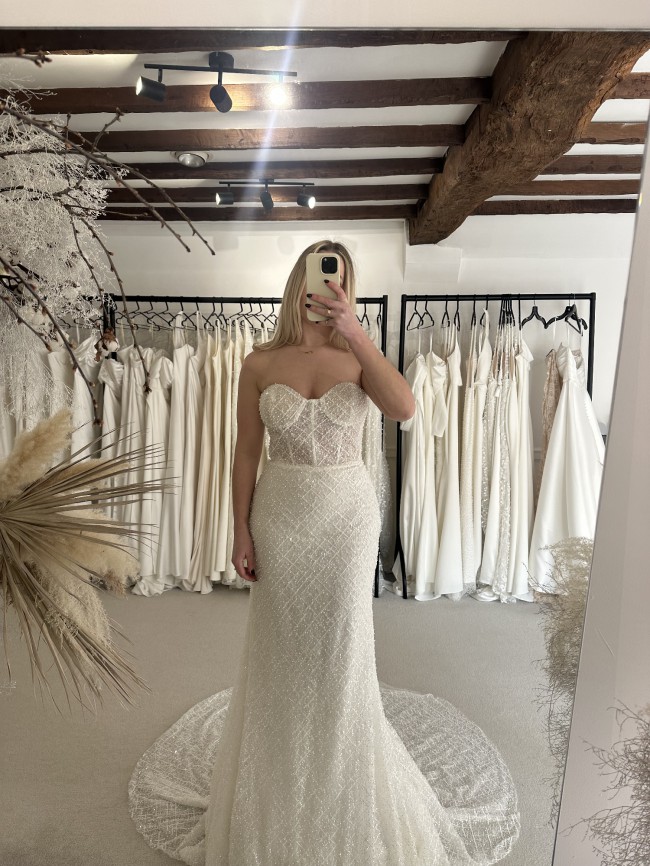 This dress can be tried on at our boutique in Dorset, please message to book.