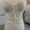Carter combines MWL's ever-loved and ultimately flattering corset-like bodice and figure-hugging sheath skirt with a dazzling, pearlescent bead and sequined lace.