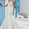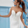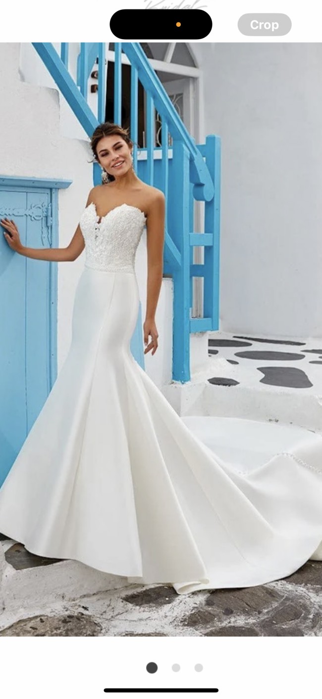 An elegant fit and flare gown! Covered buttons that line the back of the flared skirt pair with the lace appliqués on the strapless sweetheart bodice to add a touch of details to this sophisticated look! Brand new! Only tried on once at the store fitting. Bridal size 12 which is like a 6-8 in US size. No alterations.