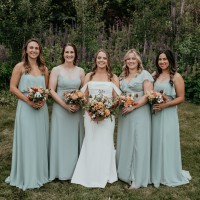 - Dress has been taken in very minimally in the bust/bodice area (was a size 12 in bridal, so now the bodice is probably closer to a size 10, but can easily be let back out)