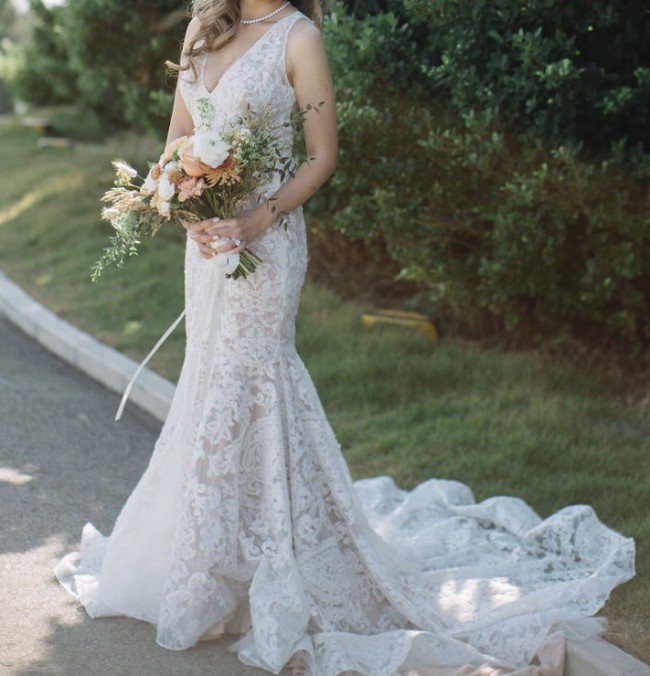 Bought in 2018 for 2019 wedding, stored since then, have both wedding photo as well as original Tony Ward website photo. Classic timeless elegant design.