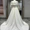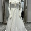 CLASSIC SATIN PLUS SIZE BALLGOWN WITH POCKETS & OFF THE SHOULDER SLEEVES