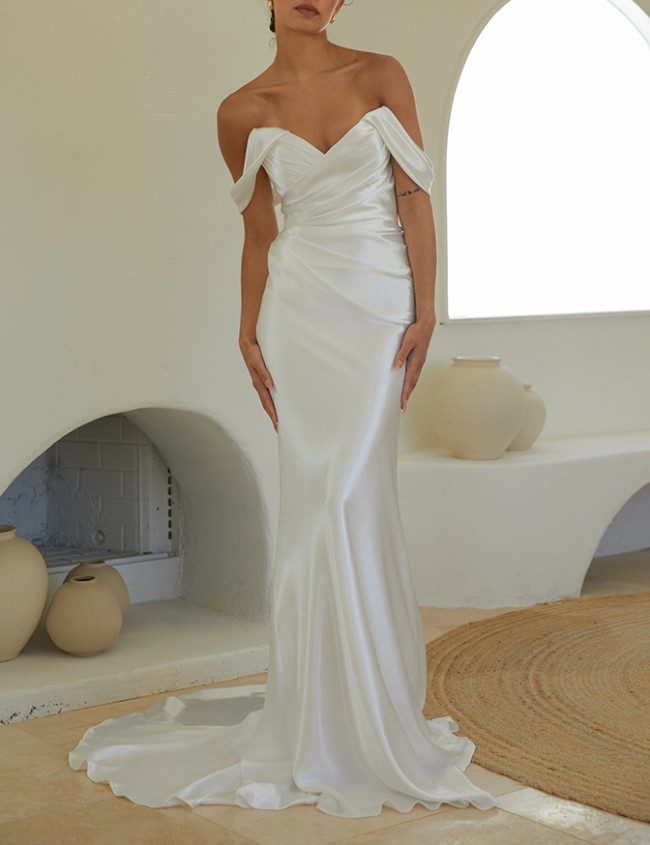 BRAND NEW UNWORN NEWHITE Soleil gown. Hand-draped structured sweetheart dress in a beautiful hammered silk. I ordered in a size 6 without the sleeves and no other alterations besides to shorten the hem to 5'6" height (with heels on). Ended up going in a different direction for my wedding day. This is a stunning dress for a glamorous and chic bride.