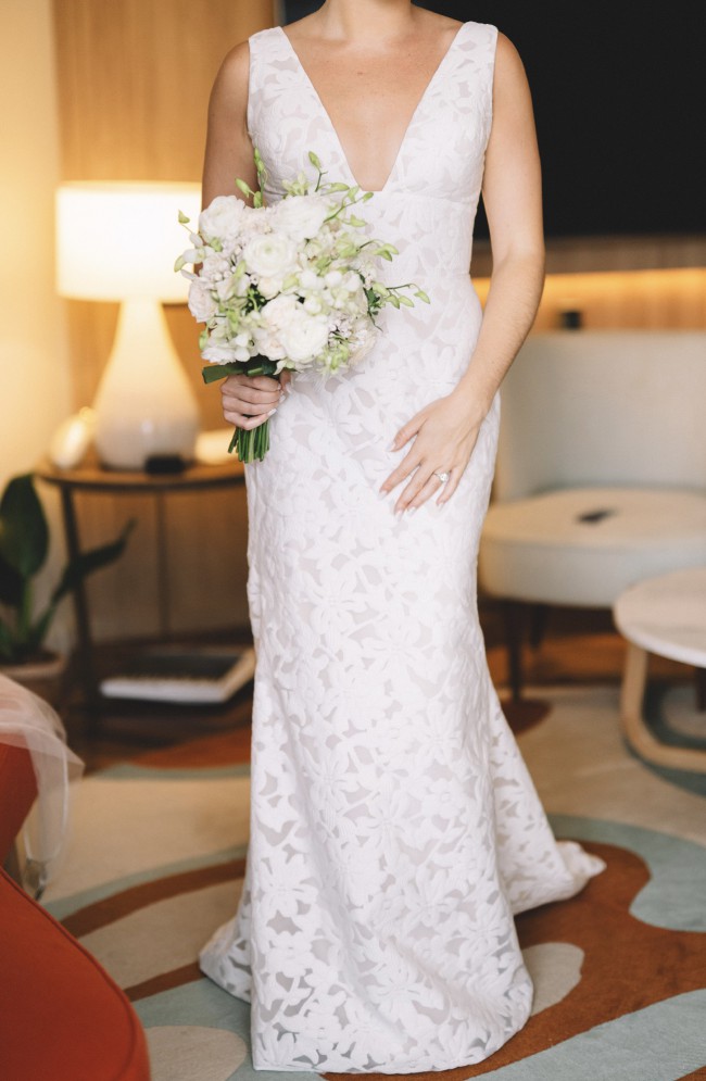Size 6 - slightly altered - in excellent condition, worn once for a few hours and professionally cleaned. No stains or tears.