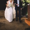 This dress has a slight train. There are bustling attachments designed into the dress.