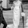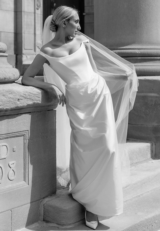 - The dress has been shortened very minimally to fit someone 5”4 wearing 3-4 inch heels and had a bustle inserted (two strings and a loop on the inside of the dress)