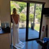Our wedding was on grass, so there are a few stain marks on the inner side of the train and the inside front hem of the dress. These stains are on the inside and are not visible on the outside. The stains are also very faint as the dry cleaners did an amazing job using all natural products. For photos please message me