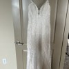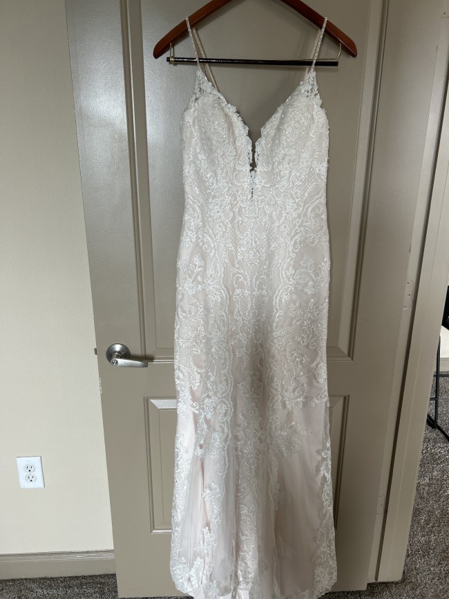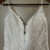 Flattering dress especially in mid section! Very forgiving if you have a tummy or stressed. She’s a beauty! Comes with veil