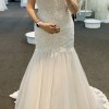 The colour on label says 'sand' I would describe it as a gorgeous pale blush. I would say it's a size 14/16 looks incredible on with a beautiful train. Has been in its cover bag since it was bought from the bridal shop it's never been taken out.