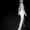 This dress featured subtle beaded embroidery throughout with a high sheer neck and sweetheart neckline. The dress is backless, full length and has a long sleeves. It is lined with ivory silk from the neckline down with beaded embroidery over the top.