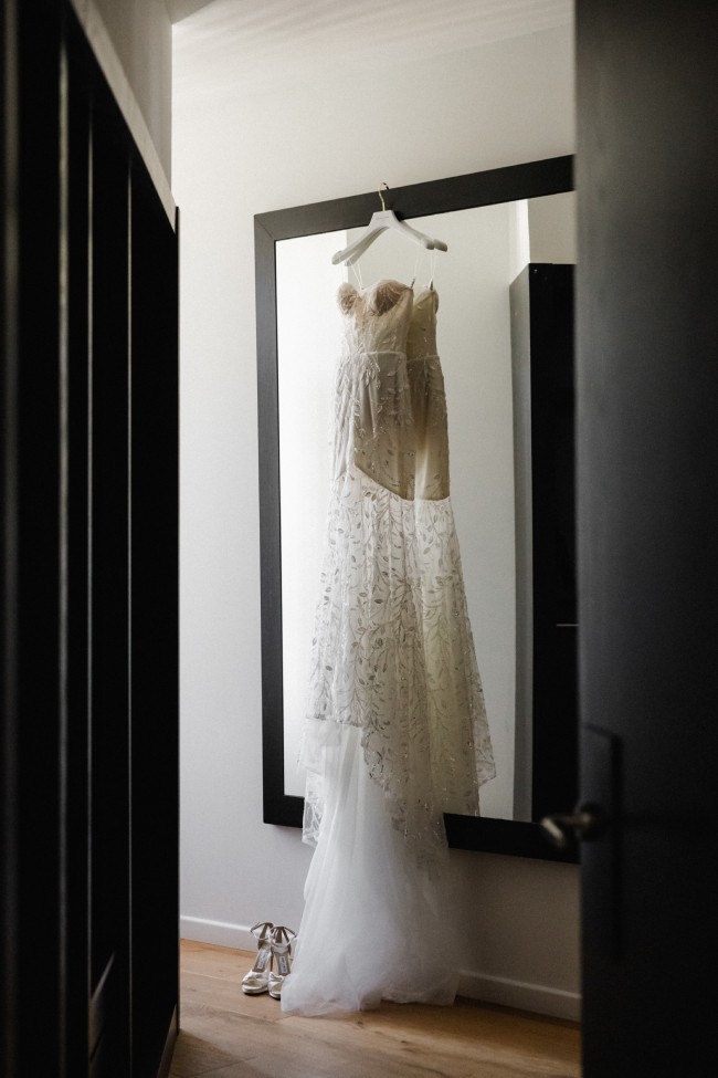 - Dress was altered to my height (5’4” wearing 5” heels on the day) and bust (cup size B) and includes a thin layer of silk tulle on inside for comfort