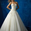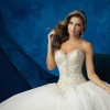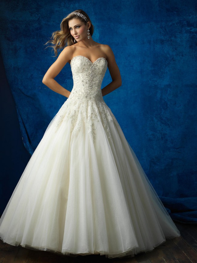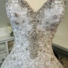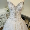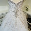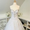 Style 9369 is a fitted, strapless bodice contrasted by the full, layered skirt of this sparkling ballgown. Being sold in white.