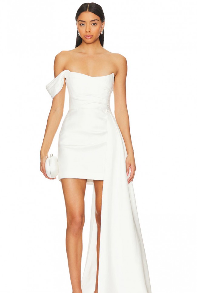 The most complimented and beautiful Brenda Dress from Sau Lee. Currently sold out on revolve and on pre order this dress is ready to go! I had ordered a size 10 (being a standard size 8) and realized it was way too big; so got it altered to fit my frame. I from top to bottom am a standard medium (usually a size 8 over a 6 in most fashion, and am a size 27/4 in Abercrombie jeans for reference) this dress does have some wiggle room though! It was not tight at all and was so comfortable. The detachable skirt adds an element of class but can be removed if you end up going to a rehearsal dinner after party. I got so many compliments on this dress and hope it can get another life!