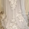 Front Illusion V neckline with embroidered White Applique flowers with a double banded beaded waist band.