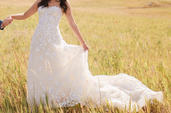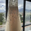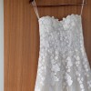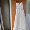 This is a custom Mira Zwillinger Karla Gown (SS 20 23), it is a sweetheart strapless A-line gown with delicately scattered florals throughout. It's light, comfortable, and perfect for any wedding. The dress has been professionally dry cleaned. (https://www.mirazwillinger.com/dress/karla/)