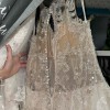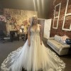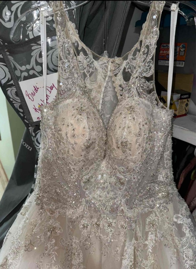 Size 12 new with tags. The pictures don’t do this dress justice. So much detail and sparkle. Had something’s come up and no longer need the dress. No alterations have been done on this dress.