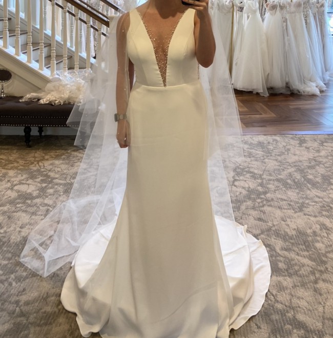 New, unaltered! The dress was only tried on when it arrived at store and once after that. Tags still attached and in garment bag.