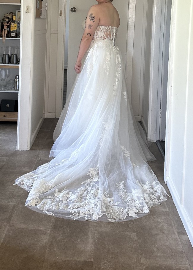 Beautiful Madison James Dress originally bought for $3000 off the floor at Allure Bridal, changed my mind close to wedding. Stunning corset look with sweetheart neckline. No alterations straight off the floor. Label size 16 fits street size 16. Size guide bust 109cm waist 90cm hips 116cm.
