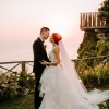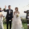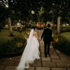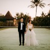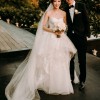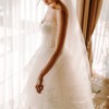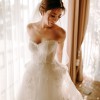 Monique Lhuillier Riley strapless wedding gown with lace bodice and tulle and lace skirt.