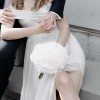 The sublime Theia is a waterfall of metallic silk tulle with a flattering sweetheart neckline and corset bodice featuring crossover front and wrap-around waist pleating details. The tulle falls elegantly from the fitted waist, falling fluidly to the floor and designed to move gracefully. The style can be customized as preferred, with removable wide shawl covering the arms or simply strapless.