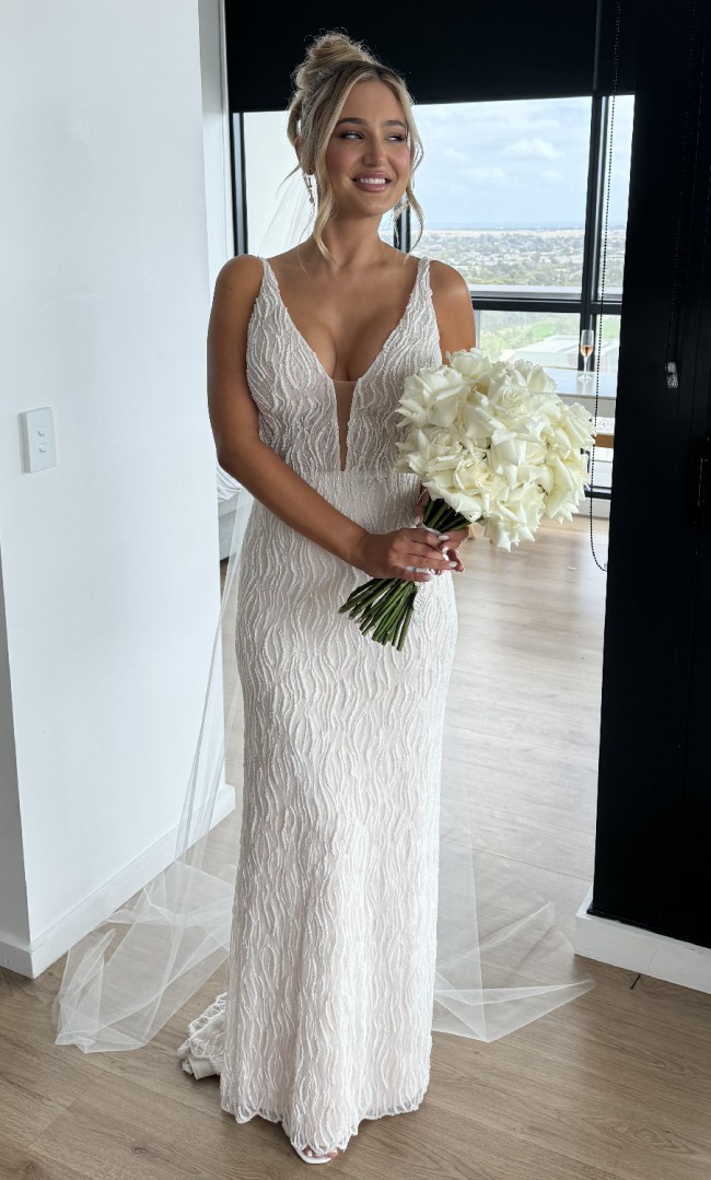 Wedding day was 23 February 2024. This dress has been dry cleaned with Keep Sake Bridal Hand Washing service in South Australia and has a protective cover over it at all times.