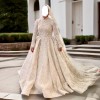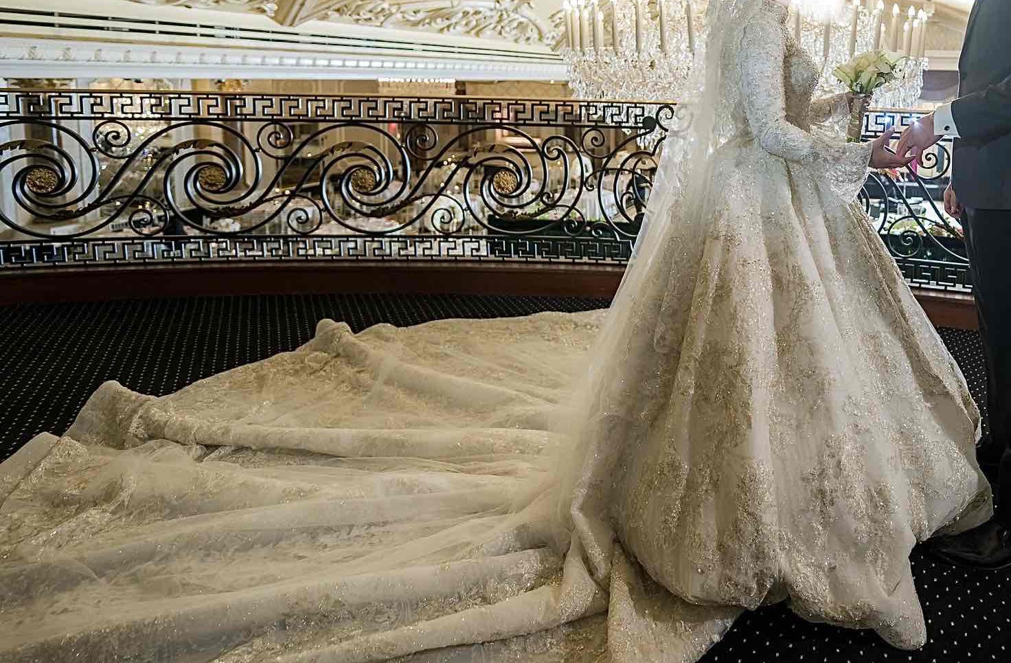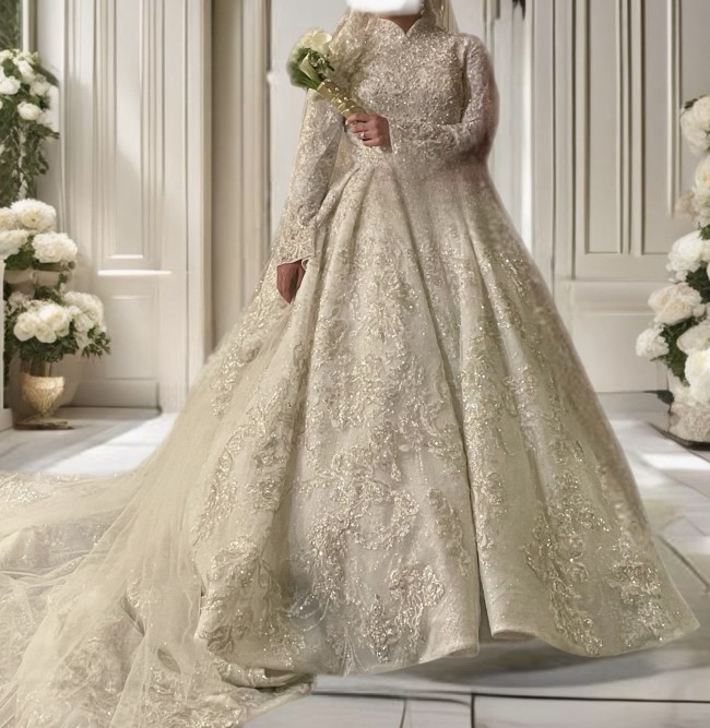Gorgeous Custom Made Luxury Bridal Dress made by Sena Masoud! This dress is named ‘Fatin’ absolutely stunning details that sparkles in every way possible! I had the bell sleeves added and the neckline customized to add a special twist to the dress that I don’t see often, so this dress is very unique! This dress was super comfortable to wear, it’s not heavy when you’re wearing it. It’s pretty flexible and does have a little stretch to it. The corset makes it fit to your waist so perfectly! There’s no flaws or any sign of wear and tear with this dress. I’m absolutely positive you will look and feel like royalty while wearing this dress! Quality is out of this world.