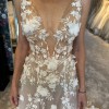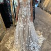 Galia Lahav "Lee" from their Fall 2023 "Darling" collection is a sheer timeless A-line dress with a deep V plunging neckline and low back. Embroidered with 3D floral bouquets throughout the entire neckline and flowing skirt. This cathedral skirt is decorated with 3D lace appliques which draw attention to its original design and shape. This gown is in perfect condition and would be the perfect gown for any bride wanting to feel sexy, romantic, and whimsical on their wedding day!