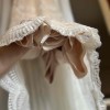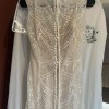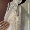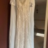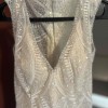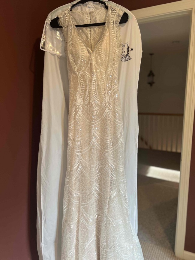 Eddy K Milano Sheath/A-Line embroidered lace with sequins dress. Champagne underdress with overlay. I bought consignment and had Dry Cleaned. Previous owner wore to her ceremony; I decided to go with a different dress as I got this shortly after engagement. It is pristine besides very minor flaws. Couple beads or sequins to be sewed back on, slight pulls, two of the buttons on back are stretched- I can provide more photos. Label size 10 US was altered to size 6 US. Cups are for 34D are removable and lightly sewn in, some padding. A French bustle was added. I am 5”5 and the dress length is perfect with 3 “heels. Waist is about 28, there is some give to the fabric. Outer fabric is embroidered lace design with shimmering clear sequins. I can try on per request.
