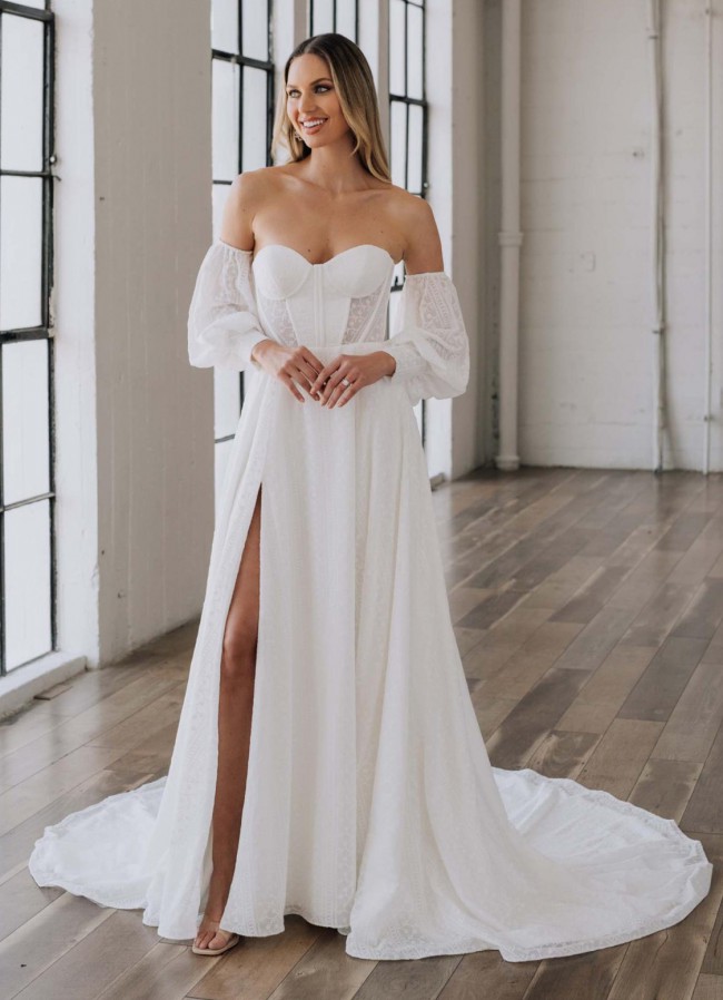 Removable sleeves - gorgeous buttons up at wrist, elastic at top to stay on arms.