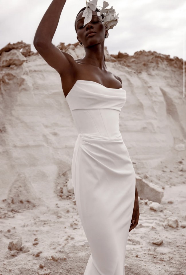 - Alterations: the dress was altered to fit the measurements above and a wrist bustle was added (see photo for reference)