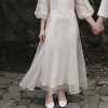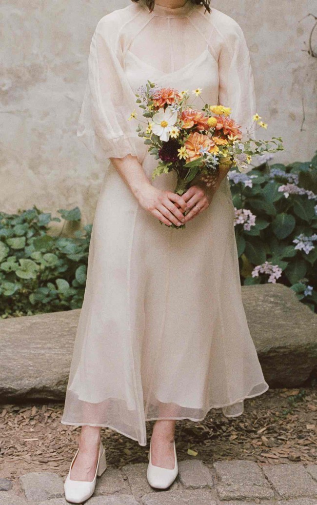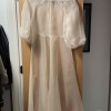 Kamperett Meiere midi dress in ivory, size XS. This was worn once for my wedding, and it has been dry cleaned since then. It has no alterations and no flaws or signs of wear. I will ship it in the original Kamperett box it came in! I will also include the dress’ tags, which I cut out since the dress is sheer. The slip worn underneath is not included! Approximate garment measurements (from Kamperett’s website): Bust: 34” Waist: 29” Hip: 44” Length: 47.5” Shoulder: 16” Also from their website: “Due to the delicate seaming along the waist and bust, as well as the fragile nature of non-stretch silk organza, we recommend allowing 2-4” of ease and sizing up on this style if you are between sizes. Length measurement referenced above is taken from center back.”