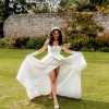 Gorgeous ivory mikado princess ball gown on straps with a square neckline with a front slit on a bodice and a front slit on the skirt. Purchased in February 2024 and worn in September 2024.