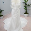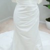 Info from the designer: Notch Neckline Stretch Mikado Fit and Flare Gown with Pleated Accents